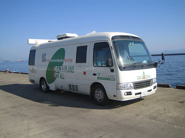 平成2年より県内一円、検診車で職場や学校等に訪問して健康診断を実施しており、今では年間30,000人が受診しております。